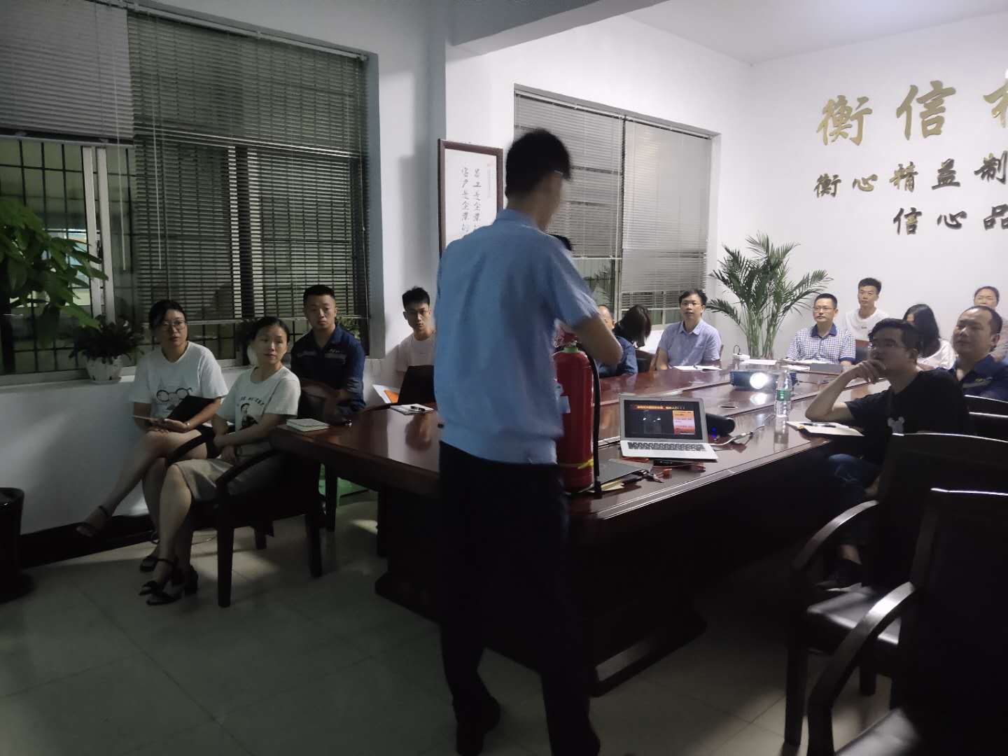 為了提高公司員工的消防安全意識、減少火災隱患、掌握火災現場(chǎng)逃生技巧,8月11日,衡信機械邀請了成都市利民消防宣傳中心張教官來(lái)給我們上了一堂易懂、易記、實(shí)用性強的消防安全培訓。張教官向大家介紹了消防安全知識,通過(guò)播放視頻火災案例介紹了滅火知識、火災中撲救的程序及現場(chǎng)自救的方法與要領(lǐng),提醒大家要時(shí)刻注意消防安全;并現場(chǎng)與大家互動(dòng)提問(wèn)防火自救知識,消防設備的使用方法及作用;還耐心解答大家的問(wèn)題,使大家進(jìn)一步了解學(xué)會(huì )自救逃生的重要性;并結合生活實(shí)例重點(diǎn)講解了家庭使用電器、汽車(chē)防火的注意事項,糾正了我們在生活中對于防火的一些錯誤認識。